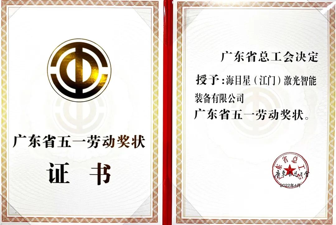 獲獎(jiǎng)榮譽(yù) | 江門海目星榮獲“廣東省五一勞動(dòng)獎(jiǎng)狀”