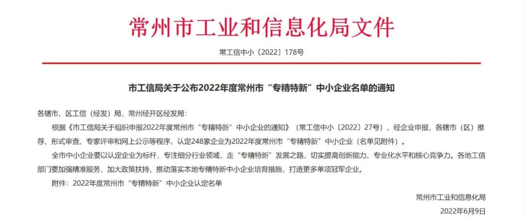 近日,常州市工信局公示了2022年度常州市“專精特新”中小企業(yè)的入選名單,經(jīng)企業(yè)申報(bào)、各轄市(區(qū))推薦、形式審查、專家評(píng)審和網(wǎng)上公示等程序,海目星激光智能裝備(江蘇)有限公司(以下簡稱:江蘇海目星)被認(rèn)定為2022年度常州市“專精特新”中小企業(yè)。